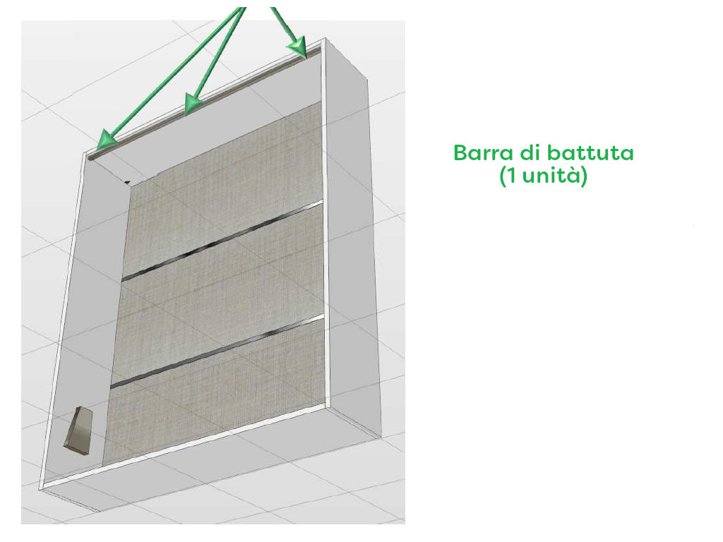 • Barra di battuta in ferro tubolare a sezione quadrata, preforata (va montata in alto nella struttura)