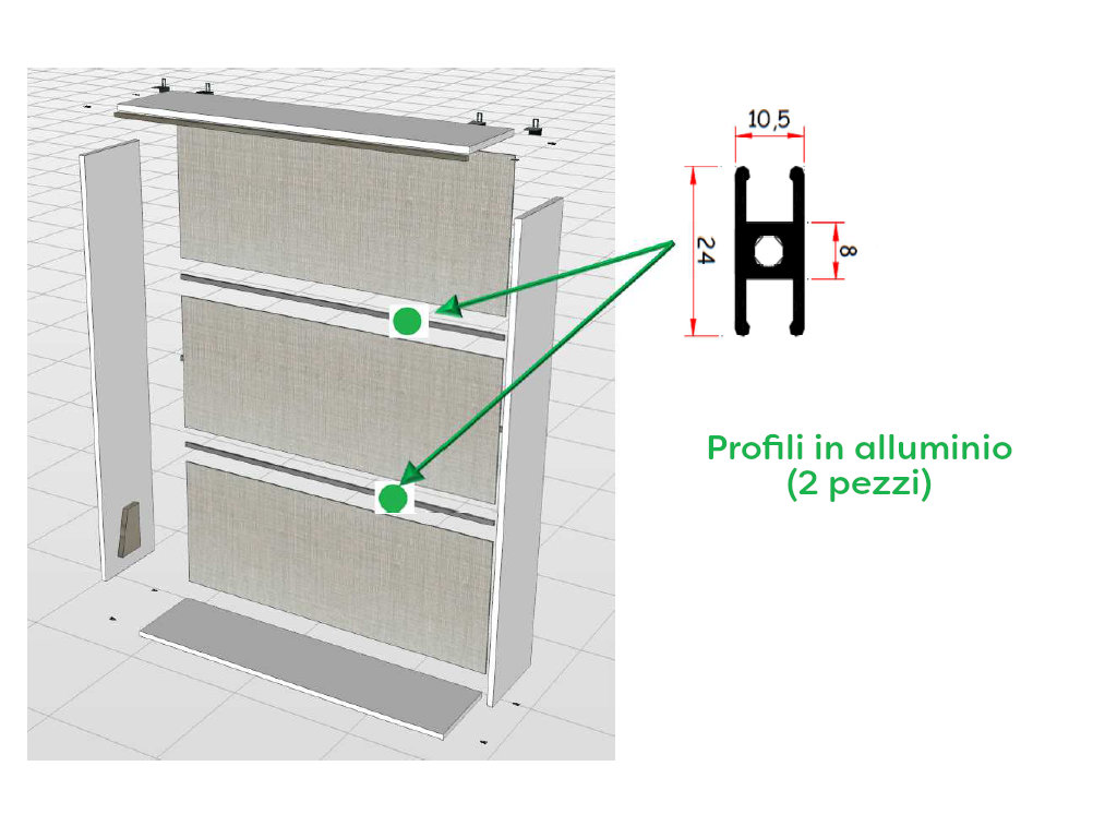 Collo dei letti a scomparsa linea Piuma e Neve contenente le seguenti parti: